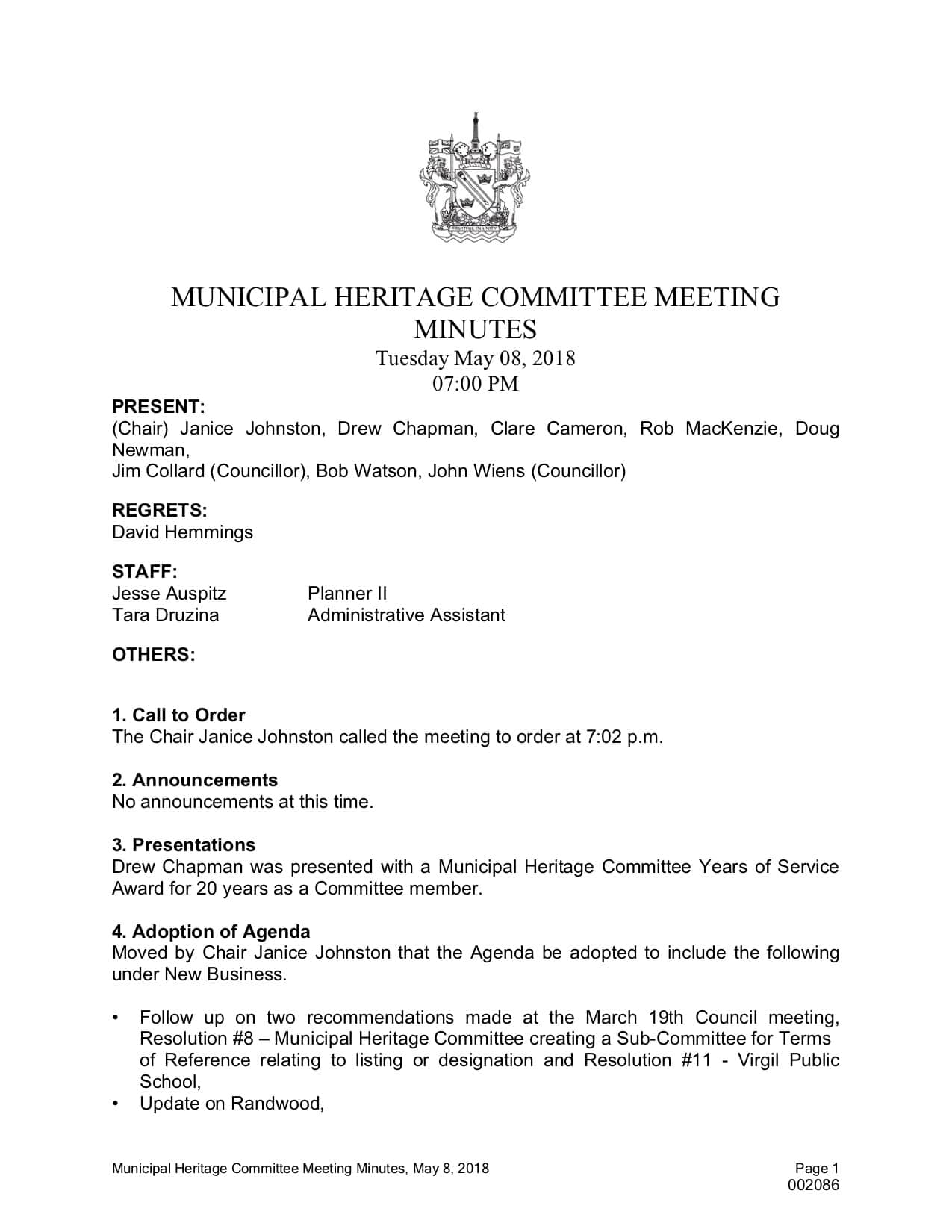 23 – MHC Meeting Minutes (May 8, 2018) published February 24, 2019 in LPAT Appeal – Part C – Proposed Amendment Record