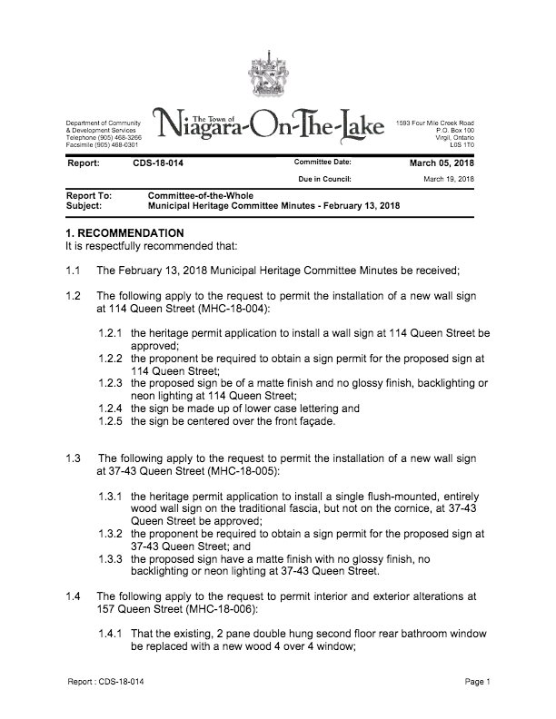 Municipal Heritage Committee minutes Feb 13 2018 Municipal Heritage Committee Minutes Feb 13 2018 March 14, 2018